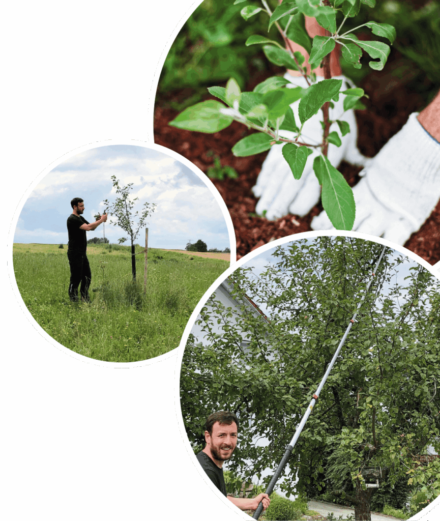 - Rasen pflegen: mähen, düngen, vertikutieren